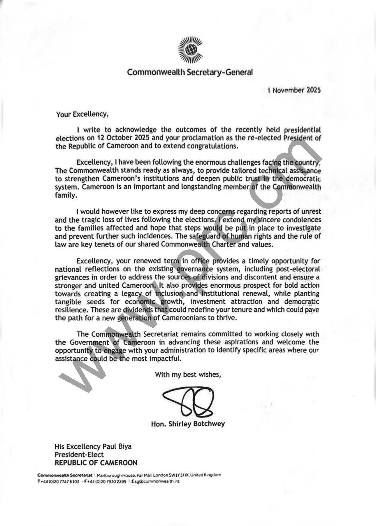 2025 Presidential Election: Commonwealth Secretary-General Sends Congratulatory Message to President Paul BIYA Print Tweet Next >