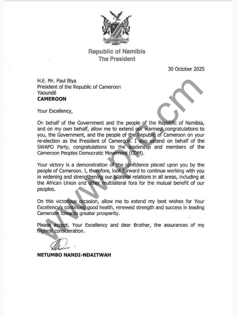 Congratulatory Message from President Netumbo Nandi-Ndaitwah of Namibia