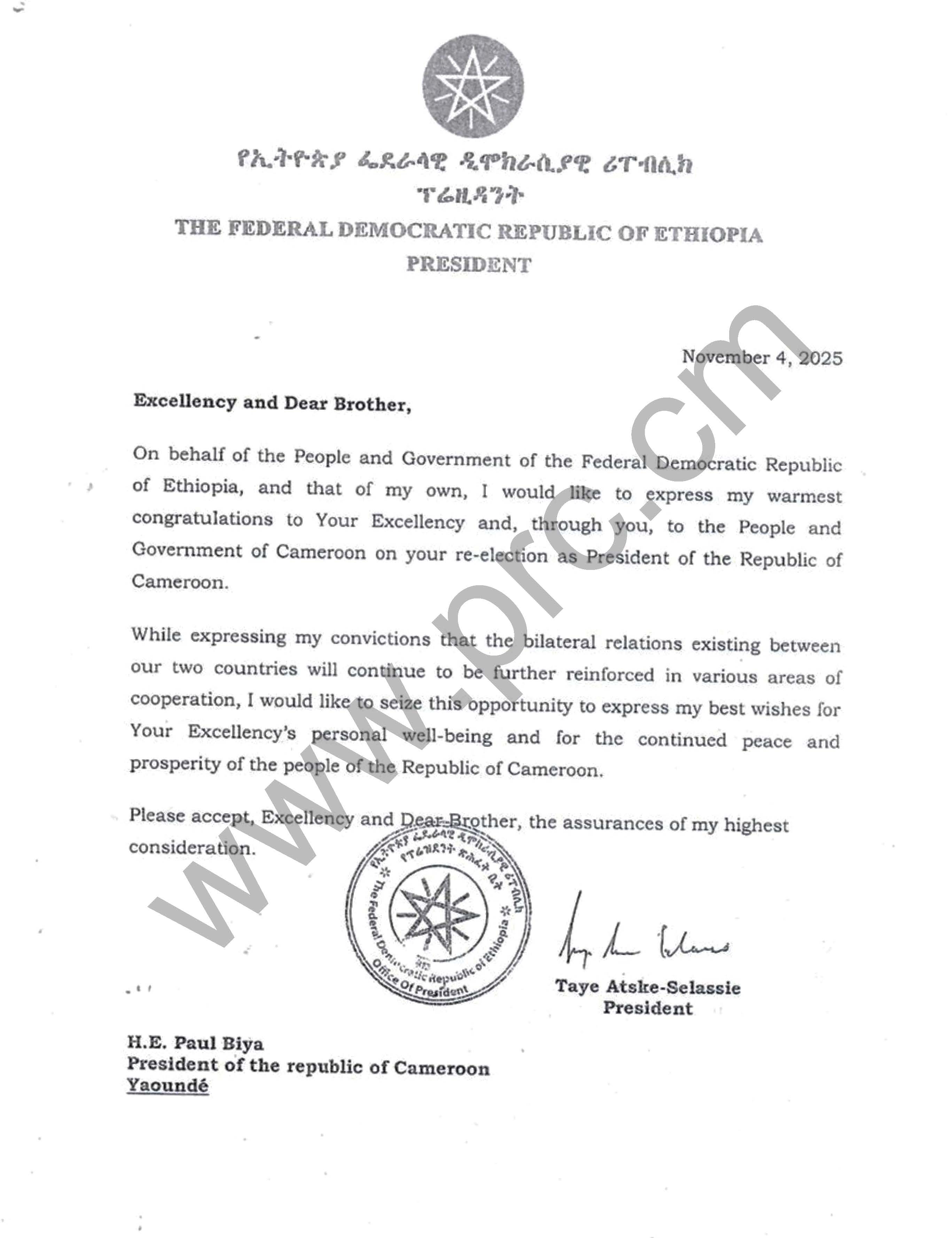 Congratulatory Message from the President of the Federal Democratic Republic of Ethiopia Print Tweet Next >