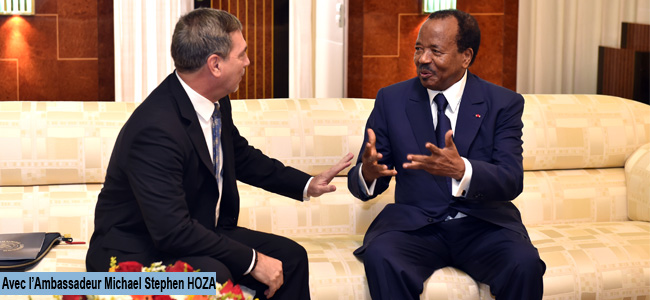 En matinée, le Président de la République et l’Ambassadeur des Etats-Unis au Cameroun, Michael Stephen HOZA ont planché pendant plus d’une heure sur le renforcement de la coopération militaire entre les deux pays, en guerre contre la secte terrorisme Boko Haram dans l’extrême-nord du Cameroun. La collaboration entre les armées camerounaise et américaine va se poursuivre, a-t-il promis, notamment par la dotation en équipements de combat et par la formation.