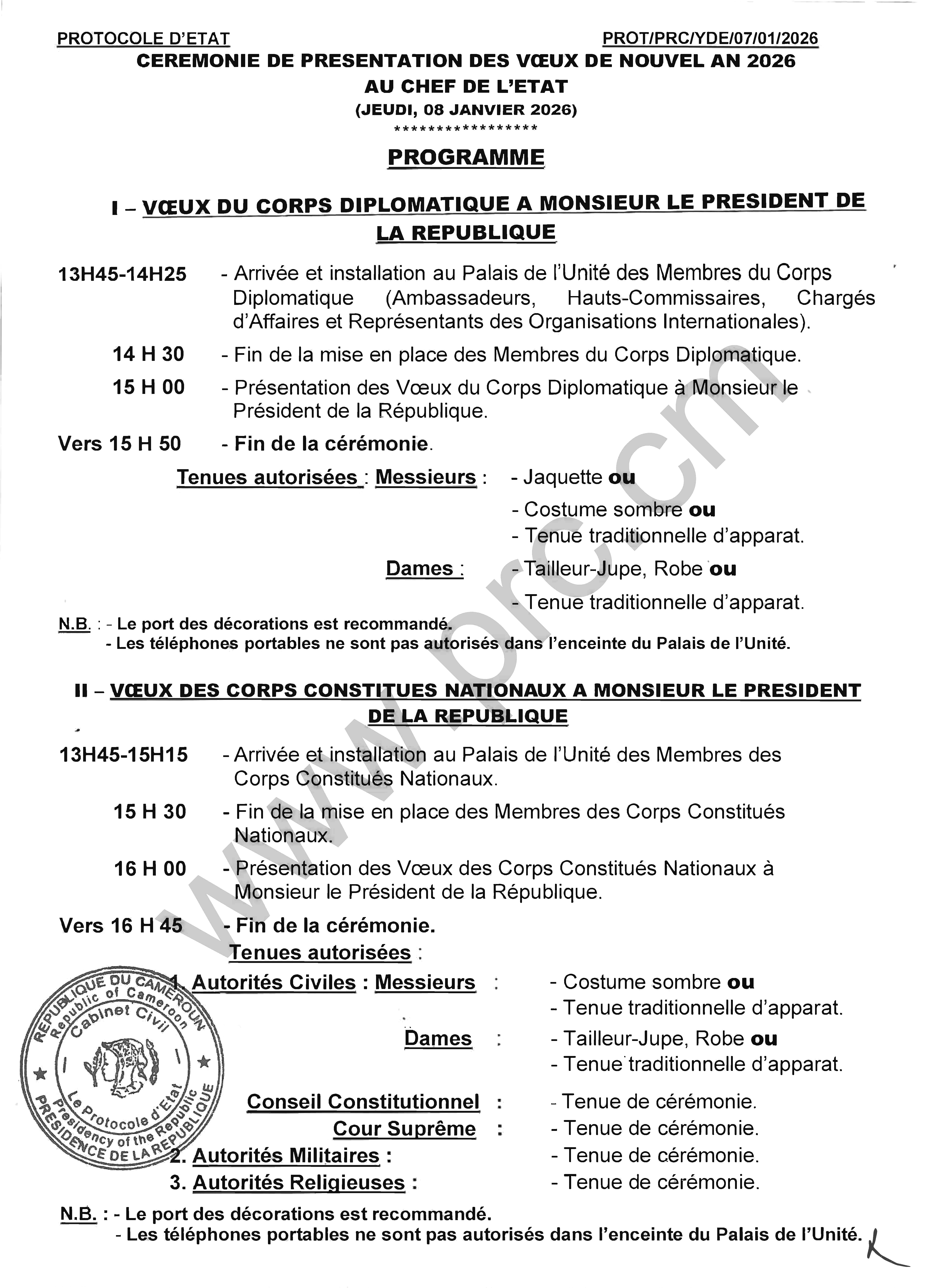 Cérémonie de présentation des vœux de Nouvel An 2026 au Chef de l'Etat