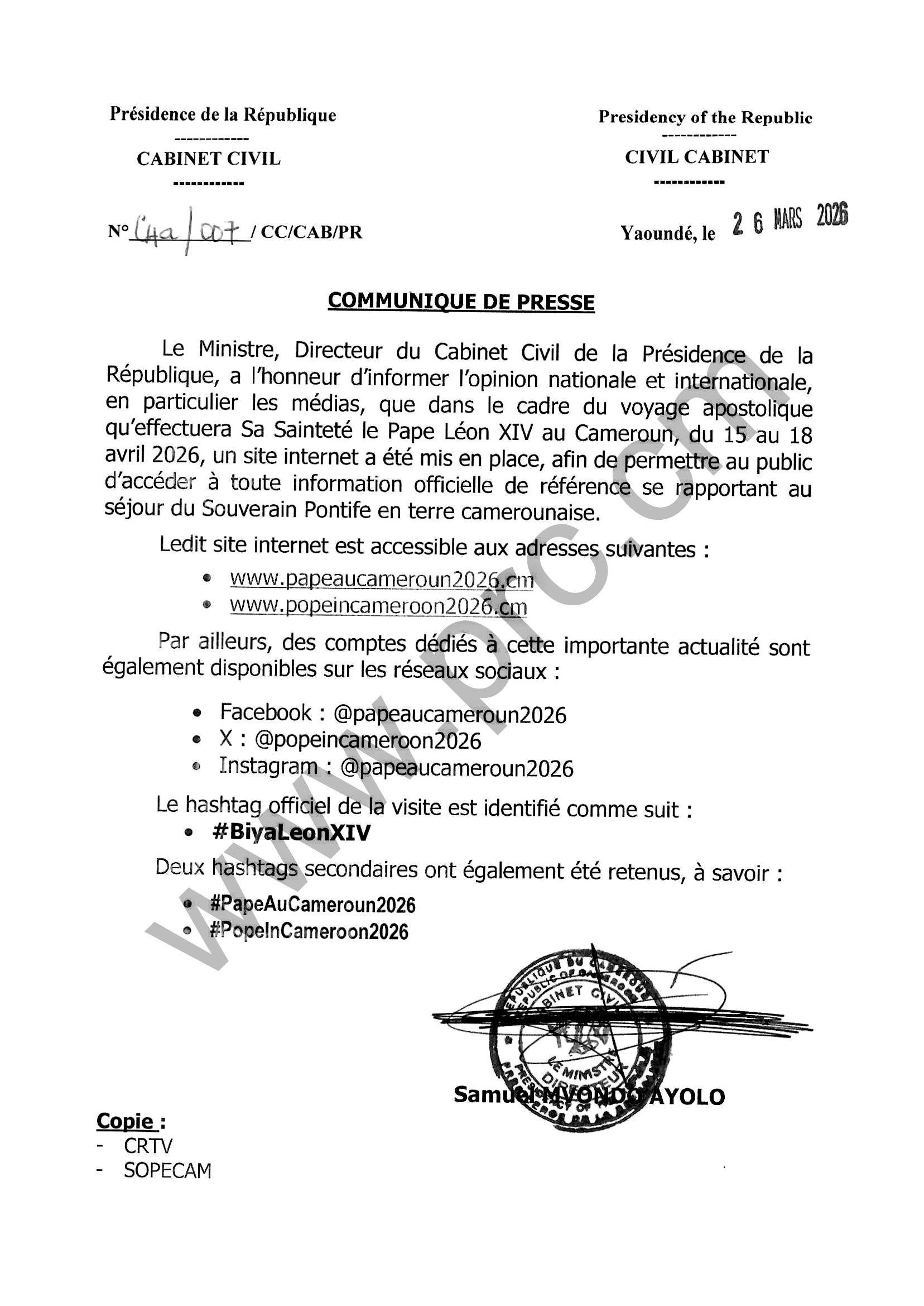 Un site internet pour le voyage apostolique du Pape Léon XIV au Cameroun