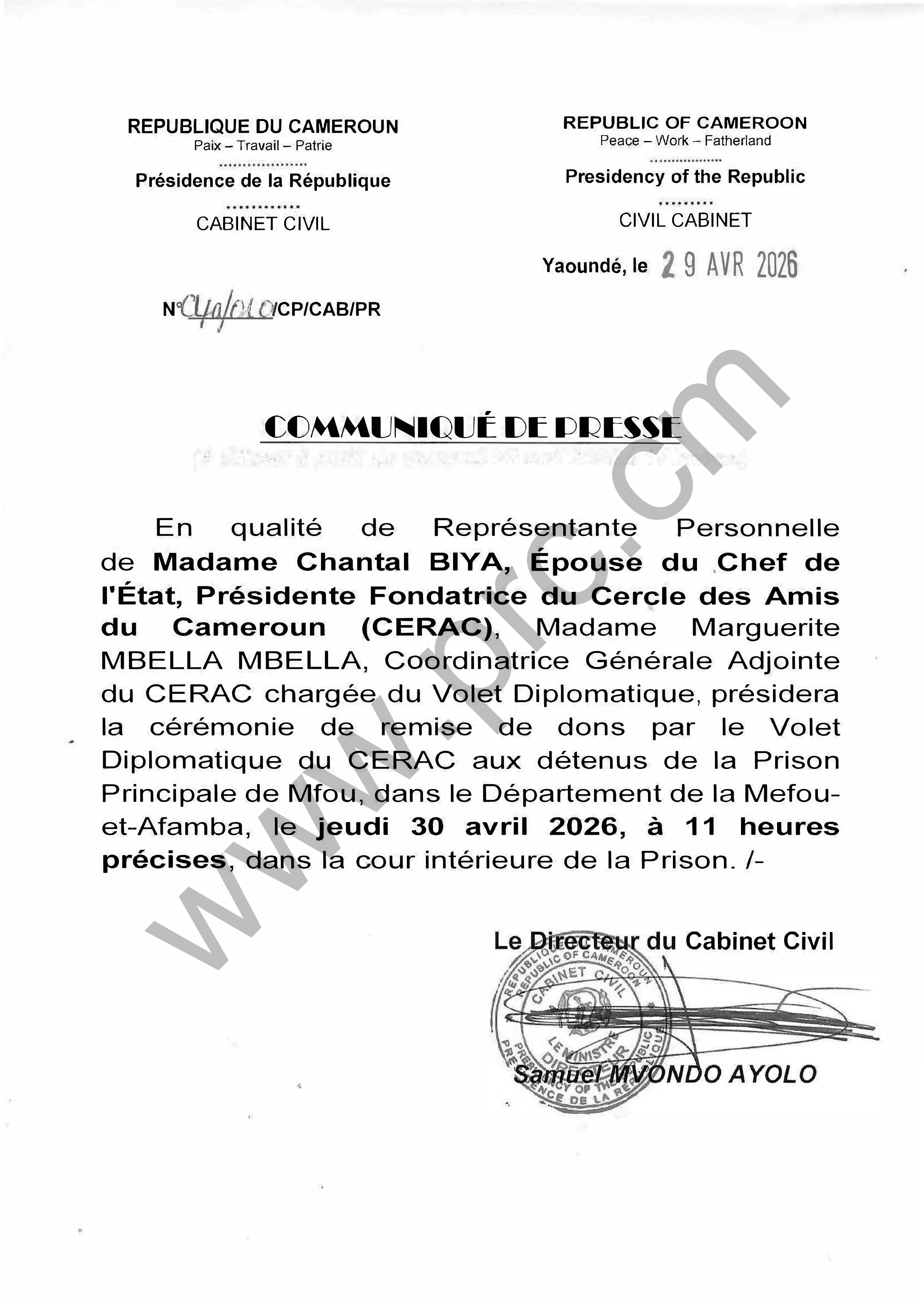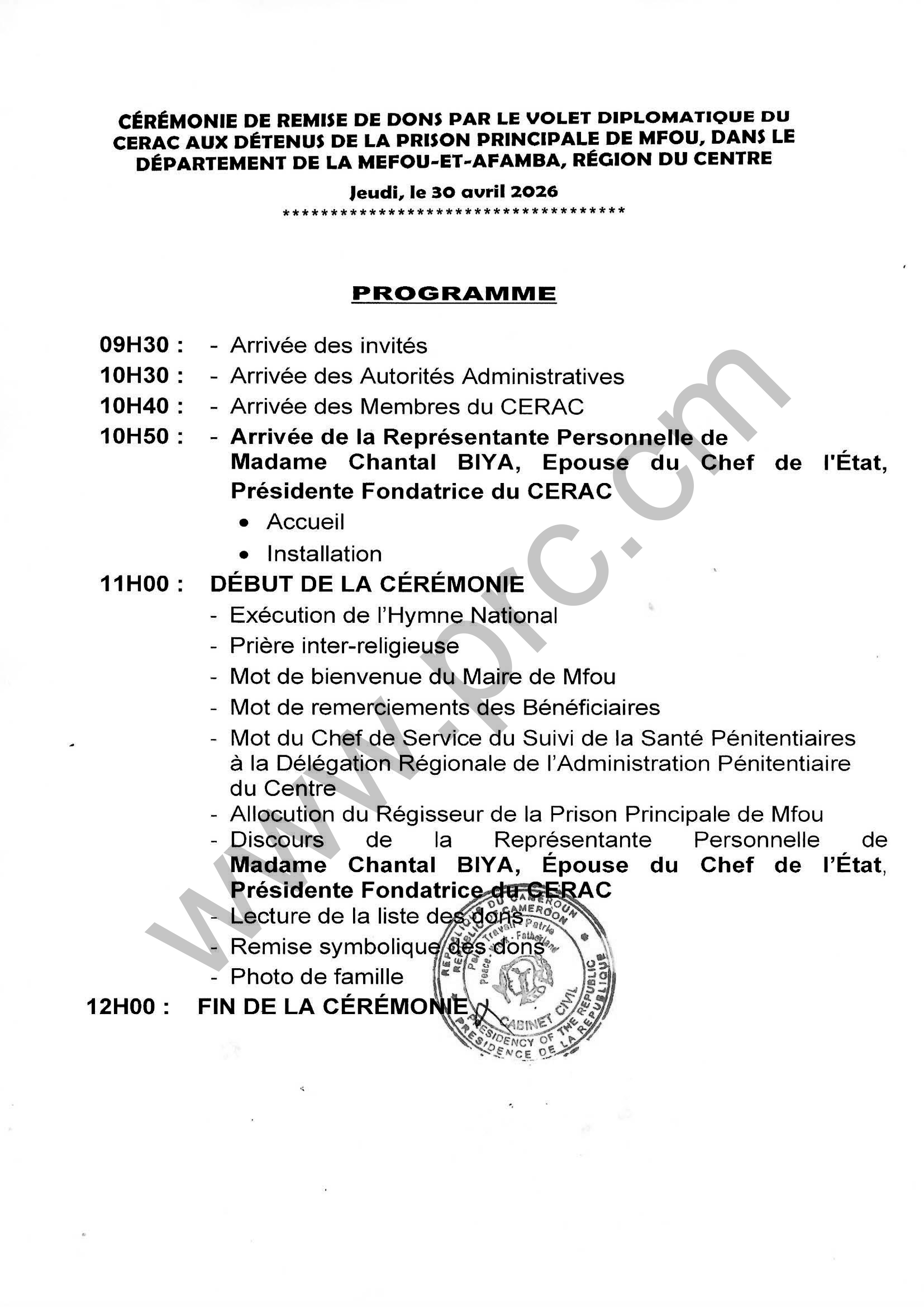 Remise de dons par le CERAC aux détenus de la Prison Principale de Mfou